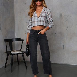 Amber Embers Plaid Button Down Top