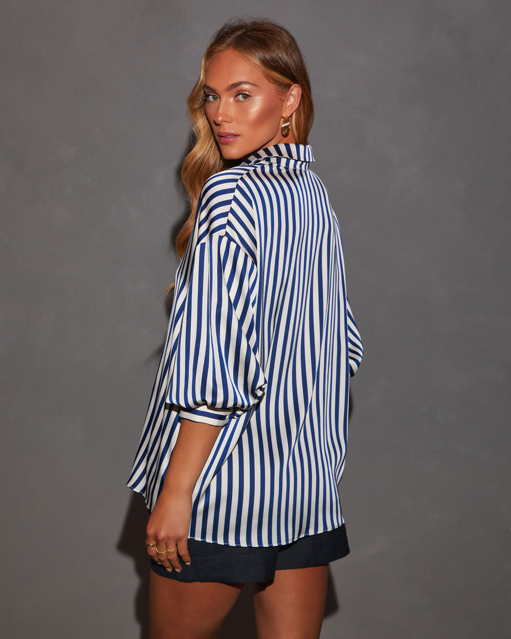 Be the first to review “Blake Striped Blousson Sleeve Collared Satin Shirt”