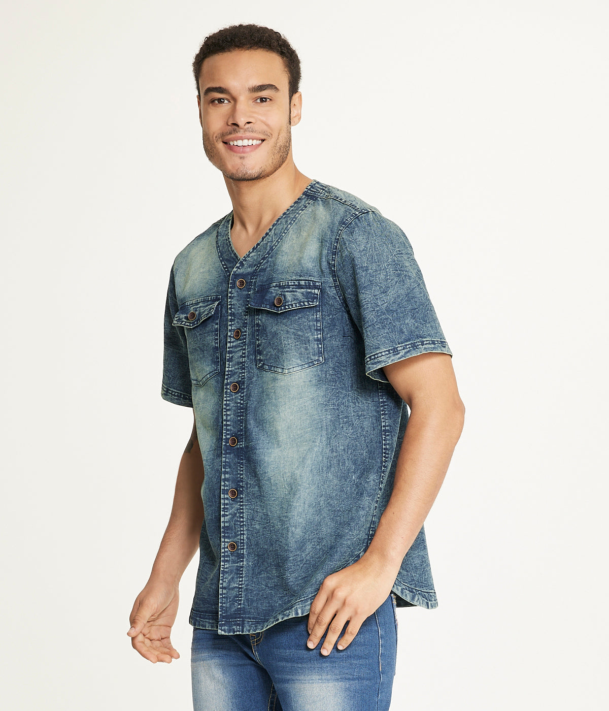 Step up to the plate with the Brooklyn Laundry Men’s Baseball Denim Shirt. Crafted from comfortable cotton. this short-sleeve shirt combines classic denim style with a sporty twist. perfect for a casual and laid-back look. Score a home run in fashion with this versatile and effortlessly cool piece.