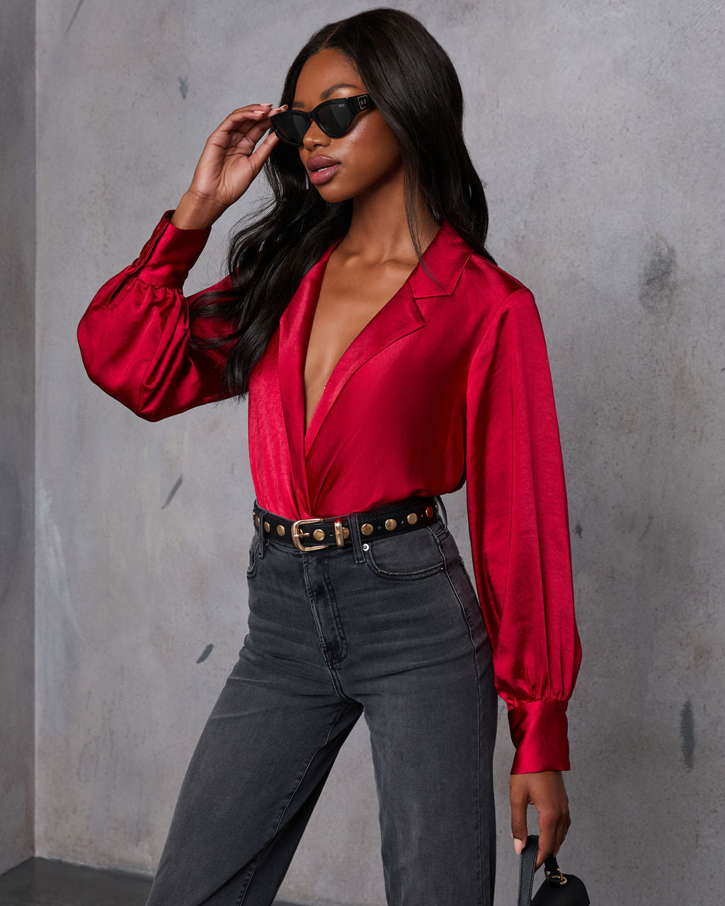 Introducing the Sayla Collared Satin Top and embrace autumn with a look that’s as versatile as it is fabulous. Made of luxurious satin. this top features a surplice front. buttoned barrel cuffs and an elastic back hem for a playful twist. making it both stylish and comfortable. Perfect for the new season. the Sayla Collared Satin Top effortlessly transitions from office to evening. embodying the relaxed yet refined vibe.